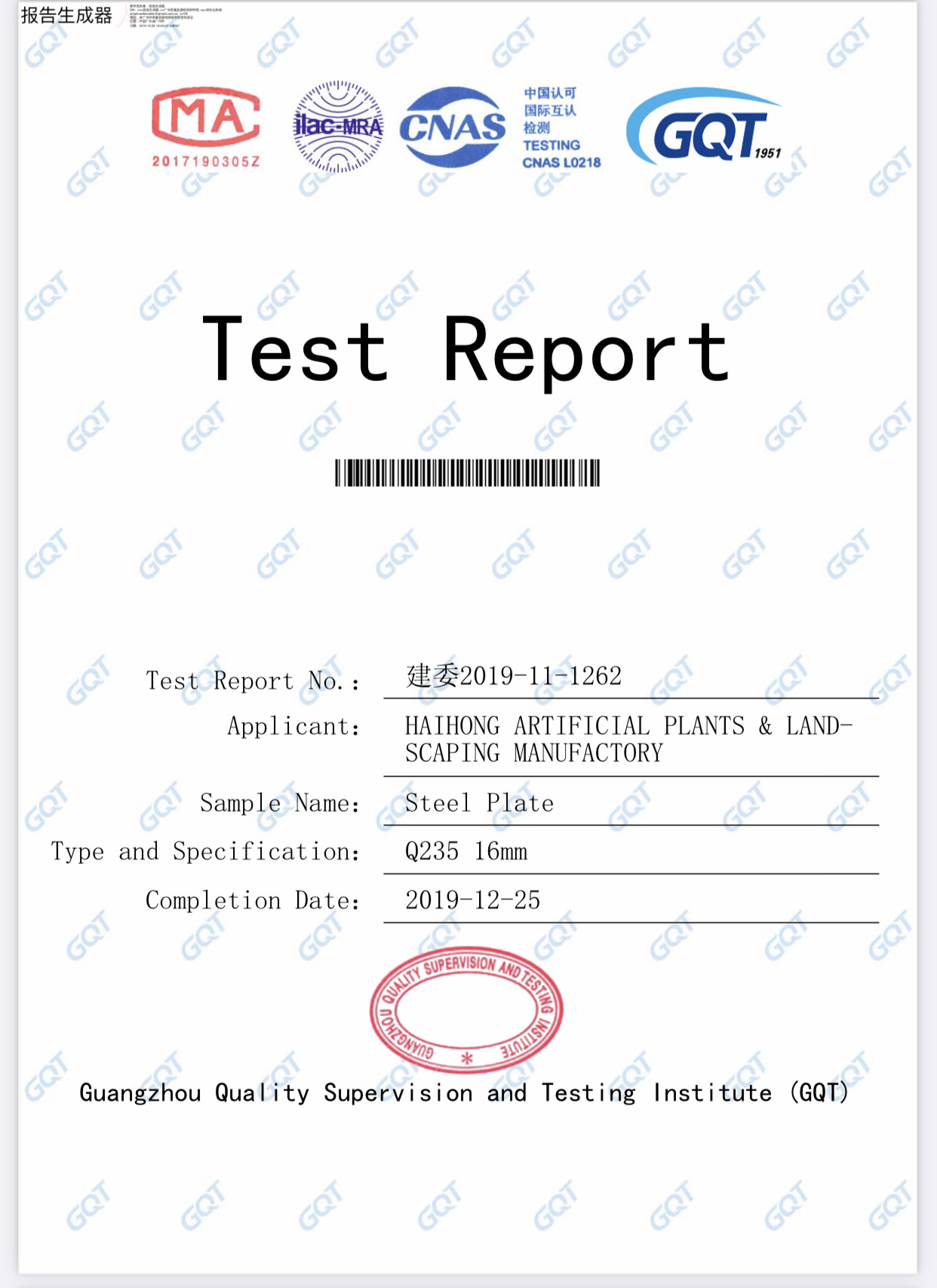 1. Q235 16mm मोटाई स्टील प्लेट के लिए टेस्ट रिपोर्ट