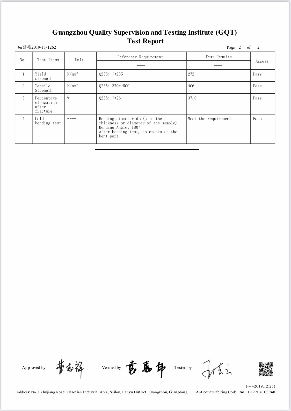 2. जस्ती स्टील ट्यूब के लिए टेस्ट रिपोर्ट