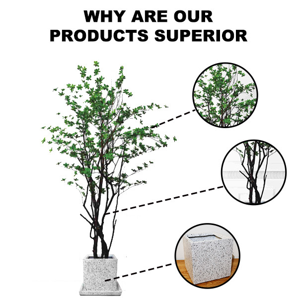 1.[बहुत ज़्यादावास्तविक]160cm HEIGHT, बेहतर पॉलिएस्टर कपड़े से बने 1000+ मोटे पत्ते सजीव रूप के यथार्थवादी बनावट के साथ मुद्रित होते हैं।