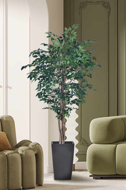 Our artificial Ficus Tree captures the elegant beauty of nature with stunning realism. Perfect for spaces where live plants struggle to thrive, this lifelike tree maintains its vibrant appearance year-round with zero maintenance.